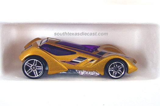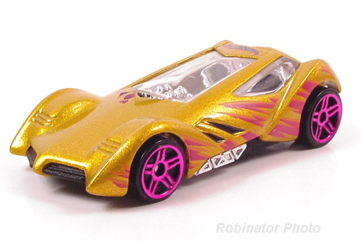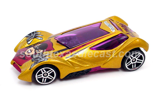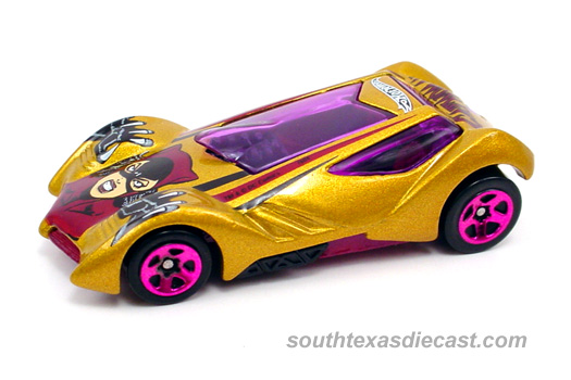 Mtflk. Gold, w/Closed front scoop, Magenta & Orange tampos on sides, HW logo on roof, Chrome interior, Matte Black Malaysia Base, w/ChrMagentaPR5's