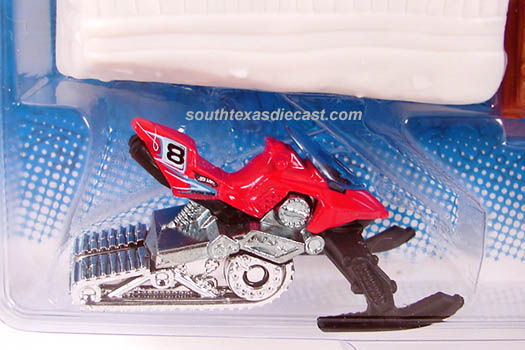 Red, w/White, Black, & Blue tampos, '8' on sides, Unpainted Malaysia Base, w/Ski's
