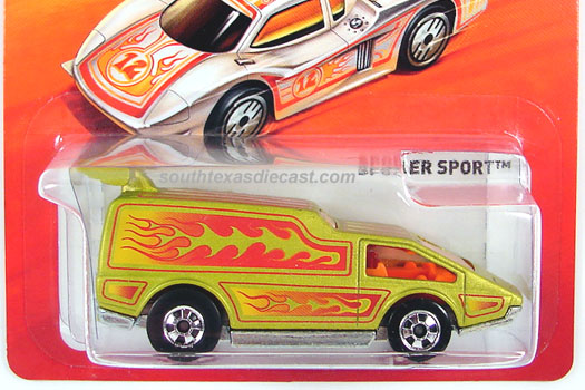 Mtflk. Black, w/Magenta, Yellow, & Blue tampos, 'Spoiler Sport' & sunset image on sides, Blue Interior, Unpainted Thailand Base, w/GHO's