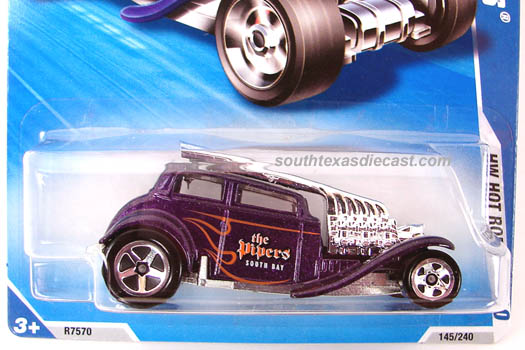 Mtflk. Purple, w/Orange, Black, & White tampos, flames & 'The Pipers South Bay' on sides, Unpainted Malaysia Base, w/5SP's