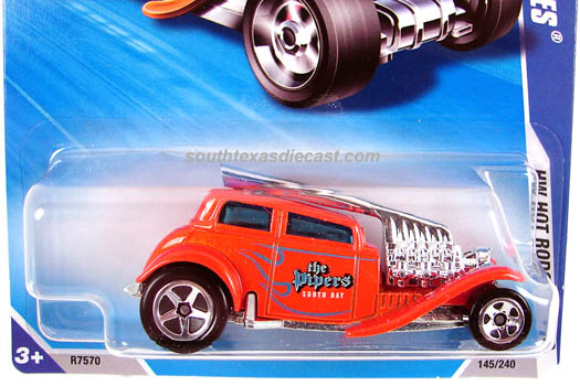 Mtflk. Orange, w/Blue, Black, & White tampos, flames & 'The Pipers South Bay' on sides, Unpainted Malaysia Base, w/5SP's