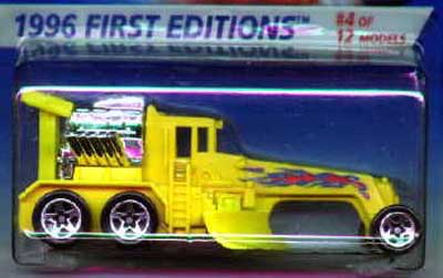 Red, w/Yellow, Black, & White tampos, 'Hot Wheels Construction Co.' on sides, Matte Black Malaysia Base, w/Yellow5SP's