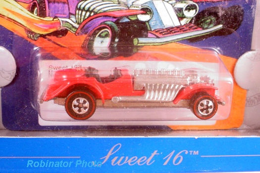 Black, w/Red & White tampos w/'Sweet 16' on sides, flames on top of fenders, Red interior, Unpainted Malaysia Base, w/WSP's