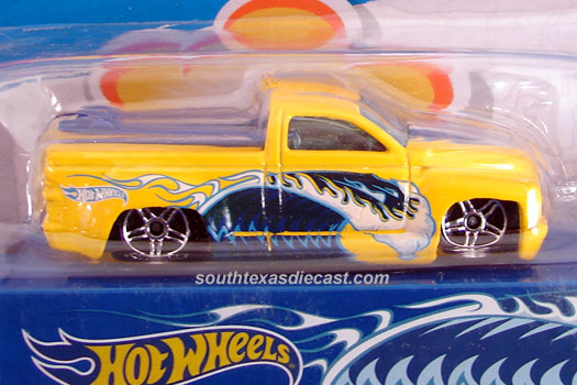 Pearl Yellow, w/Blue, Black, Orange, & Silver tampos, 'Hot Wheels' on sides, Chrome interior, Black Malaysia Base, w/5SP's