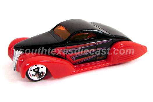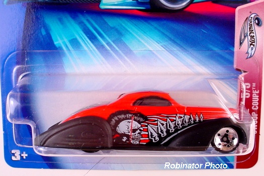 Red, w/Skeleton with mohawk in leather jacket with flames on trunk. HW in circle on roof. Skull with mohawk and spikes on sides, Black interior, Silver Malaysia Base, w/5SP/SK5's