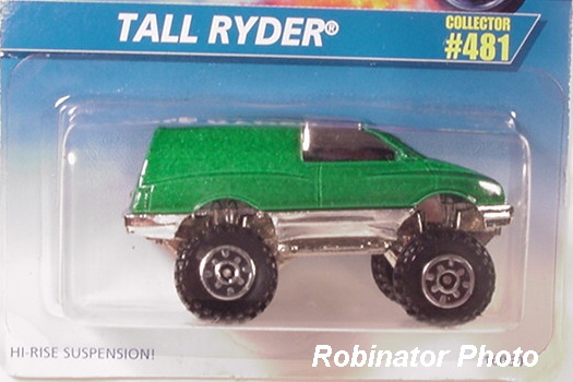 Mtflk. Silver, w/Blue, Red, & Yellow stripes, 'Tall Ryder' on sides, Unpainted Malaysia Base, w/CT's
