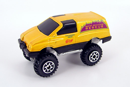 Pearl Yellow, w/Purple & Green tampo w/'Rocky Mountain Rescue' on sides, 'Ranger Ned' & Red HW logo on door, Mtflk. Silver China Base, w/CT's