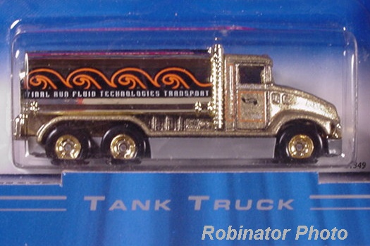 Mtflk. Gold, w/Black, Orange, & White deco, 'Final Run Fluid Technologies Transport' on sides, Final Run logo on hood, Gold Chrome interior, Grey Malaysia Base, w/RR's