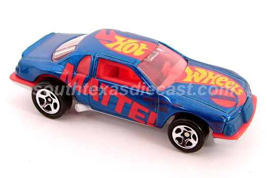 Mtflk. Blue, w/Red & Yellow tampos w/'Mattel' on sides, Lg. HW logo across roof & hood, Red interior, Clear Window, White China Base, w/5SP's