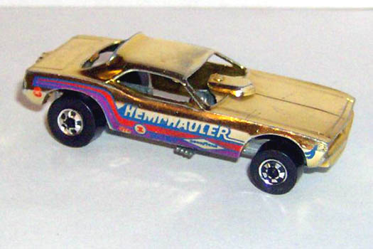 Gold Chrome, w/Red, Blue, & Magenta tampos w/'Hemi Hauler' & racing deco on sides, Black interior, Unpainted Hong Kong Base, w/BW's