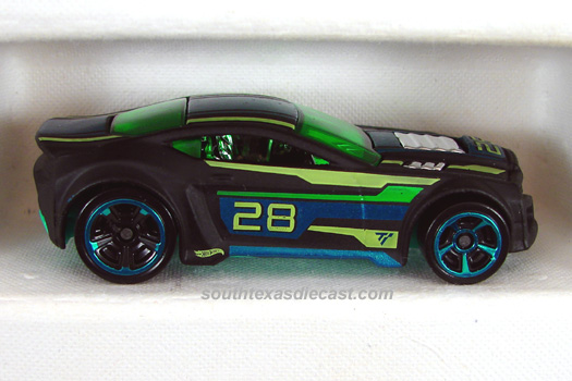 Matte Black, w/Blue, Yellow, & Green stripes, '28' on sides & hood, Aqua Malaysia Base, w/ChromeBlueMC5/ ChromeBlue/BlackMC5's