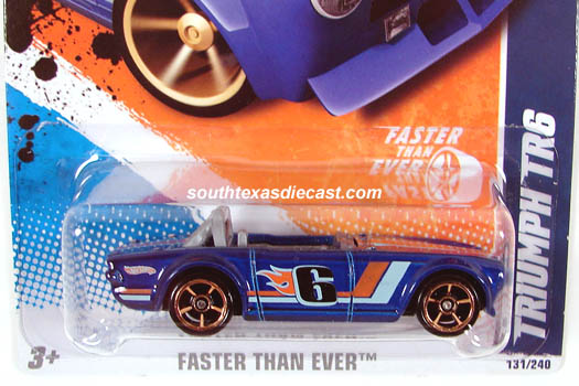 Dk. Blue, w/Orange, White, & Black tampos, stripes & '6' on sides, stripes across top, '6' on hood, Black Malaysia Base, w/FTE's