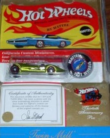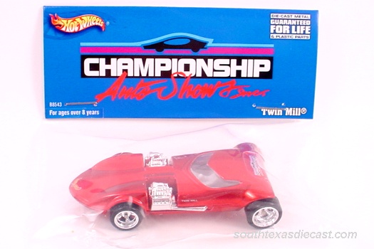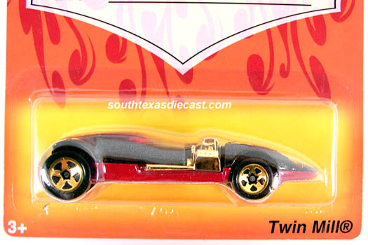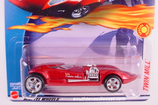 Spectraflame Red, w/HW logos on sides, front, & rear, Silver 'Twin Mill' on sides, Clear Window, Black Interior, Spectraflame Red China Base, w/RL's