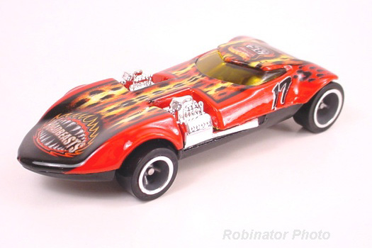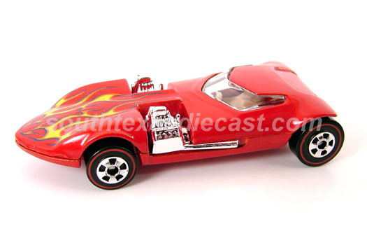 Mtflk. Black, w/Red & Orange flames on sides & hood, Unpainted Malaysia Base, w/Red/BlackPR5's