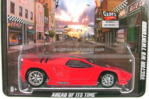 Red, w/Vector emblem on sides, White 'Twin Turbo' & 'Vector' on windshield, Dk. Grey Interior, Unpainted Malaysia Base, w/RR10SP's