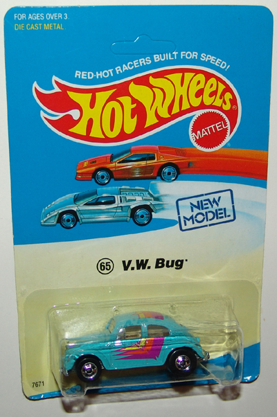 Spectraflame Blue, w/White stripes on sides & top, Black 'VW' tampo on sides , Black Interior, Unpainted Thailand Base, w/RL5SP's