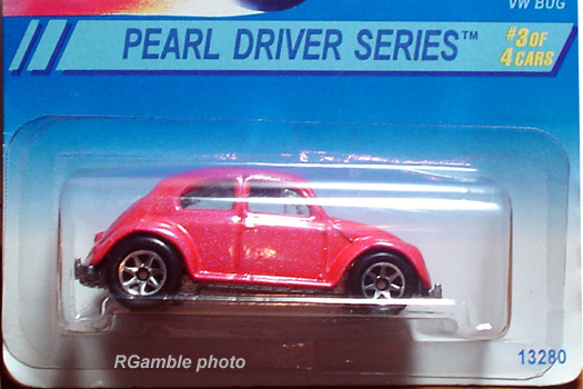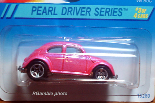 Spectraflame Pink, w/White stripes on sides & top, Black 'VW' tampo on sides , Black Interior, Unpainted Thailand Base, w/RL5SP's
