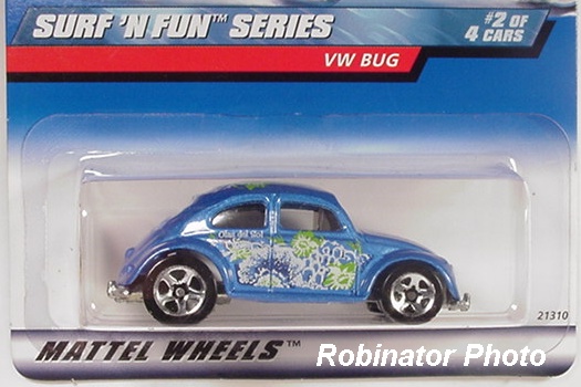 Spectraflame Blue, w/White stripes on sides & top, Silver 'VW' tampo on sides , White Interior, Unpainted Thailand Base, w/RL5SP's