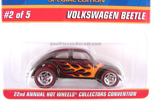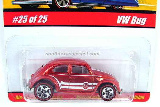Spectraflame Red, w/White stripes on sides & top, White 'VW' tampo on sides , Clear Interior, Unpainted Thailand Base, w/RL5SP's