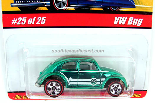 Spectraflame Green, w/White stripes on sides & top, White 'VW' tampo on sides , Black Interior, Unpainted Thailand Base, w/RL5SP's