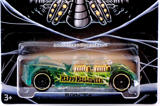 Clear Green, w/White, Yellow, & Lt. Green flames on sides & across top, 'Happy Halloween' on sides, Unpainted Malaysia Base, w/Gold/BlackPR5's