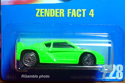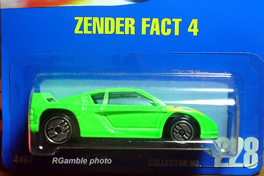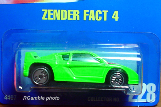 White, w/Blue 'Zender' & Gold 'Fact 4' on hood, Blue HW logo on rear wing, Grey interior, Grey Malaysia Base, w/SB's