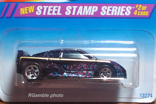 Mtflk. Midnight Purple, w/Gold stripes on sides & hood, Blue & Magenta deco on sides & hood, Gold HW logo on rear wing, White interior, Clear Window, Black Malaysia Base, w/5SP's
