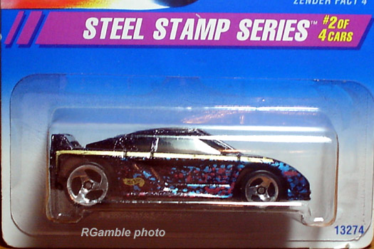 Mtflk. Silver, w/Yellow 'Fact 4' on front left fender, White 'Zender' on front, Black interior, Black Malaysia Base, w/GoldUH's